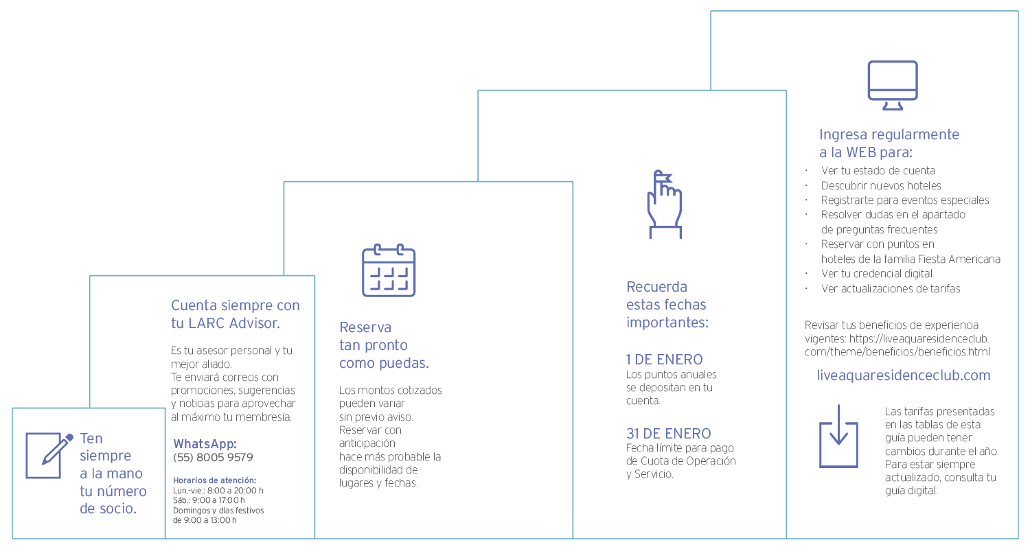 Para obtener los mayores beneficios de ser socio de Live Aqua Residence Club, ten en cuenta estas recomendaciones: